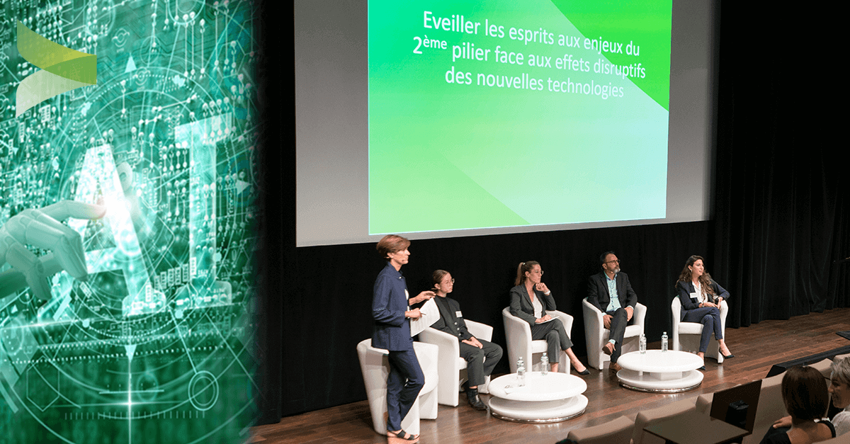 Ces sujets passionnants ont ensuite fait l’objet d’une table ronde animée avec brio par Madame Esther Mamarbacchi, journaliste à la RTS, avec les conférenciers accompagnés de Madame Rosette Terrettaz-Hejeily, Actuaire ASA et Senior Associate chez Willis Tower Watson, et Madame Laureline Wasilewski, étudiante et coprésidente des Jeunes Vert’Libéraux vaudois. Sur le thème « Eveiller les esprits aux enjeux du 2ème pilier face aux effets disruptifs des nouvelles technologies », de nombreuses questions et tentatives de réponses ont été débattues entre les intervenants et le public dans la salle autour des défis à relever pour préserver la place de l’humain dans le monde du travail de demain et du rôle que les caisses de pension pourraient jouer dans la formation ou la reconversion des individus. Au final, une matinée inspirante et stimulante qui aura permis de mettre en lumière de nombreuses pistes de réflexion concernant le monde du travail de demain et l’avenir de la prévoyance professionnelle !